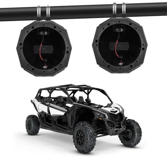 Fitment: KEMIMOTO 6.5 tower speaker enclosure can be adjusted by the mounting clamps to fit 1.5 to 2" roll cage, it can perfectly fit all UTV, such as compatible with Can Am Maverick X3, Sport, Trail, Commander, compatible with Polaris RZR, XP, ranger, compatible with Kawasaki Teryx, Mule, etc ^^ 360