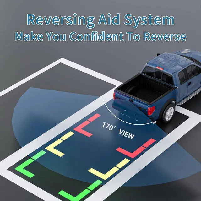 Angel View: Tailgate door handle camera view is useful for hooking up trailers and backing into parking spots; Parking line with "ON/OFF" switch help keep distance, make your driving more safe ^^