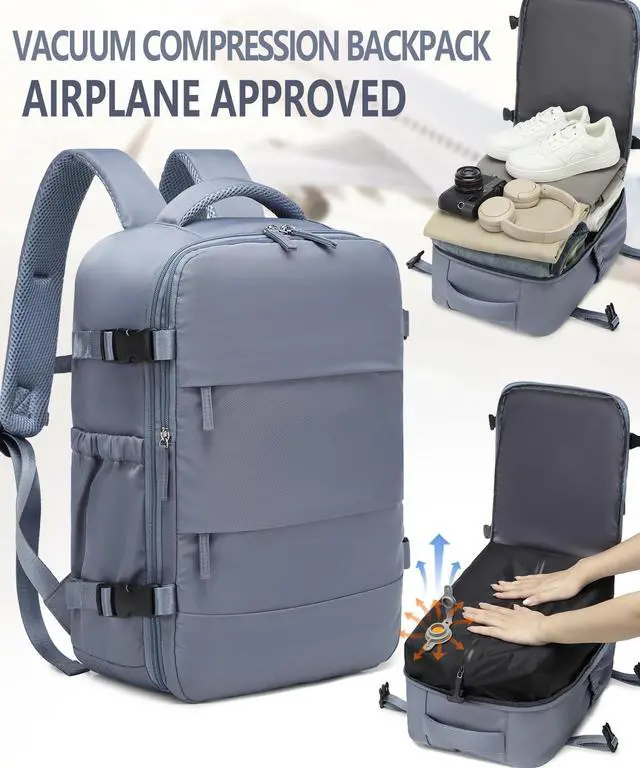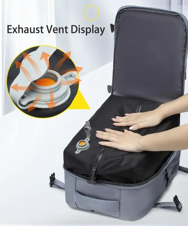 Built-In Vacuum Compression System: Comes with a manual air pump, reduces the volume of bulky items like clothes by 50%, saves space for more belongings ^^ Multi-Compartment for