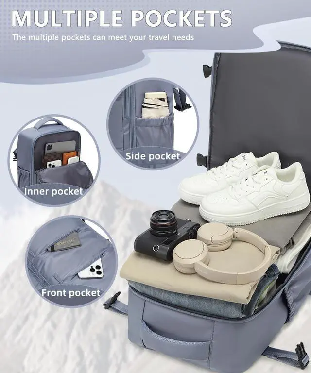 • Flight-Approved Carry-On Luggage: Compliant size of 423018 cm (slight error may occur with manual measurement), fits in airplane overhead bins/under seats, no waiting for checked luggage