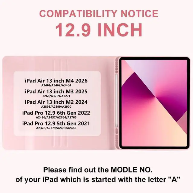 Multiple Viewing Angles: For iPad Pro 12.9 Keyboard Case made with a premium synthetic leather exterior, a secure magnetic closure & a durable interior plastic case that firmly holds pro 12.9. The Keyboard Case 12.9 inch can adjust to any angle you like, easily adjust to the most comfortable angle for you, providing you with amazing versatility. Perfect for working, writing or watching videos at office, school and home ^^ Built-in Pen Holder & Perfect Cutout: This for iPad Pro 12.9 Case Keyboard built-in Apple Pencil holder, cap and adapter slot to store your Apple Pencil, easily carry stylus and get it whenever you need it. Precise cutouts allow full access to all ports, speakers, microphone and camera. And ipad air 13 inch case keyboard fully charge in 2-4 hours, work for more than 80 hours, and stand by for 120 days ^^ 360