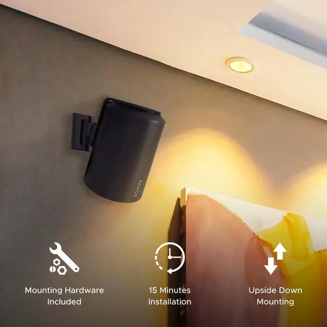 INSTALLATION: Seamlessly complementing the Sonos ERA 100 design, our wall mount is not only a stylish addition to your home audio setup but also easy to install. Achieve a secure wall mount in just 15 minutes using basic household tools. ^^