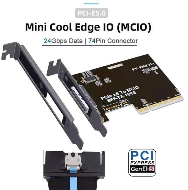 Industry standards: Support for SAS 3.0 / 4.0, PCIe Gen 3/4/5, 25G Ethernet, and 56GT/s PAM4 means that you can trust that your equipment will perform at optimal levels without any signal loss or degradation. ^^ 5) Mini Cool Edge IO (MCIO) adapter assemblies, These products can provide high performing channels with the added flexibility of where/how to use signals in your system. With 8cm low profile and 12cm standard bracket.