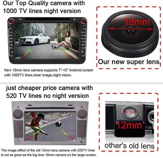 Note: This car rear view camera does not have distance guide lines by defaultWhite jumper wire: Switch for distance guide lines (No/Yes)If you need the distance guide line, please cut the white wire near the camera.