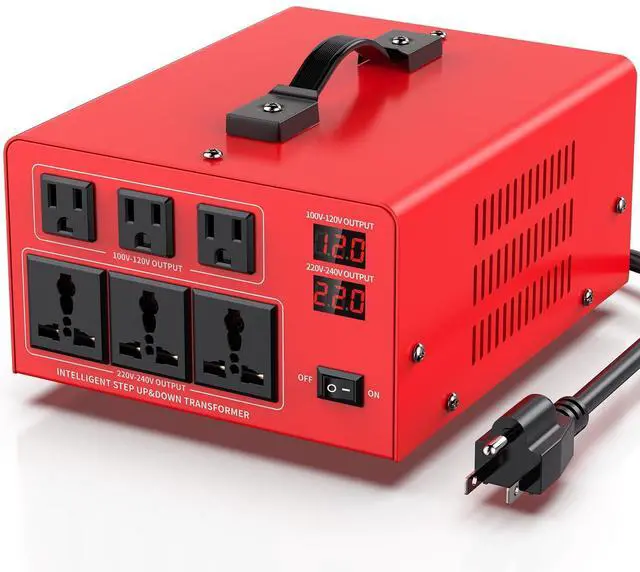 Power ConverterProduct Features: Auto TransformerIt identifys your input voltage power source automatically and then provide the correct output power. High QualityMetal casing, high quality material and stable coil can offer you a safe, reliable, affordable and convenient solution convert voltages. 4000VA Heavy Duty TransformerStep up voltage from 110V / 120 Volts to 220V / 230V / 240 Volts. step down voltage from 220V / 230V / 240 Volts to 110V / 120 Volts. Can be Used in 110 Volt countries and 220 Volt countries. Fuse ProtectionStable performance, simple operation, reliable circuit. Fuse will cut off the current if the transformer is overloaded to protect the transformer and your appliance. 3 US Sockets & 3 Universal SocketsThe voltage transformer converter can be used with any kind of appliance or device, such as rice cookers, hot water pots, household food mixers, blenders within converter rated power. Silent WorkingThe transformer works without any annoying buzzing noise is more convenient. LCD Screen DisplaySafety switch with indicator lamp to power on / off. The LCD display screen can show the output voltage and trouble code, which can help you troubleshoot.