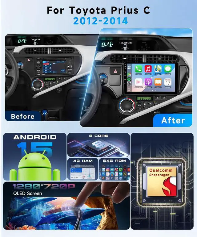 Compatibility]: This car radio is specialized for Toyota Prius C 2012 2013 2014, including the custom frame kit and dedicated wiring harness. Please check the pictures to confirm fitment issues before purchasing, if you are unsure please ask us. ^^ [Qualcomm Snapdragon 8 core