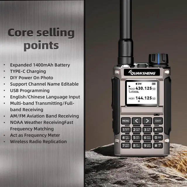 QUANSHENG FULL-BAND & AVIATION RECEIVE: The QUANSHENG UV-K1 is a versatile Handheld Transceiver featuring Multi-Band Transmitting and Full-Band Receiving (50-600MHz). Key capability includes AM/FM Aviation Band Receiving (108-136MHz) to monitor air traffic control, plus FM Commercial Radio, making it a top choice for aviation enthusiasts and hams. ^^ UPGRADED 2500mAh