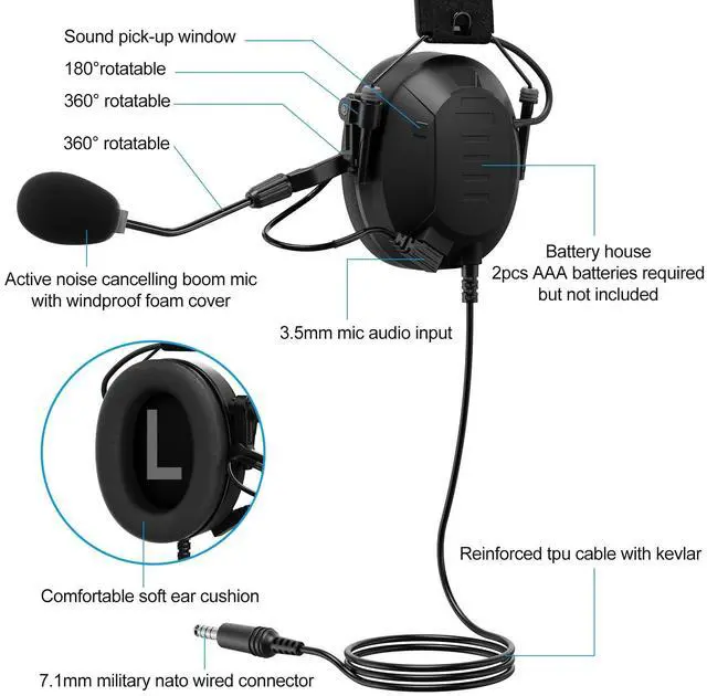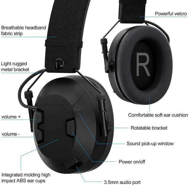 Multi-pins connector, compatible with Motorola Ailunce Retevis NR30 RB23 RB46 RT29 RT47 RT47V RT48 RT82 RT83 RT87; HD1; EX500 EX600 GP328Plus GP338Plus etc. ^^ Real noise cancelling, nrr 26dB ^^ Sound pick-up mic ^^ Heavy duty earmuffs headphone ^^