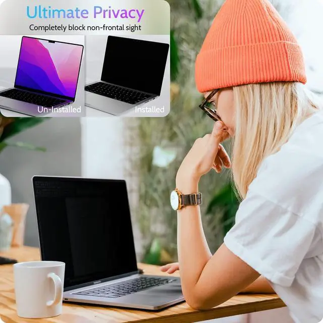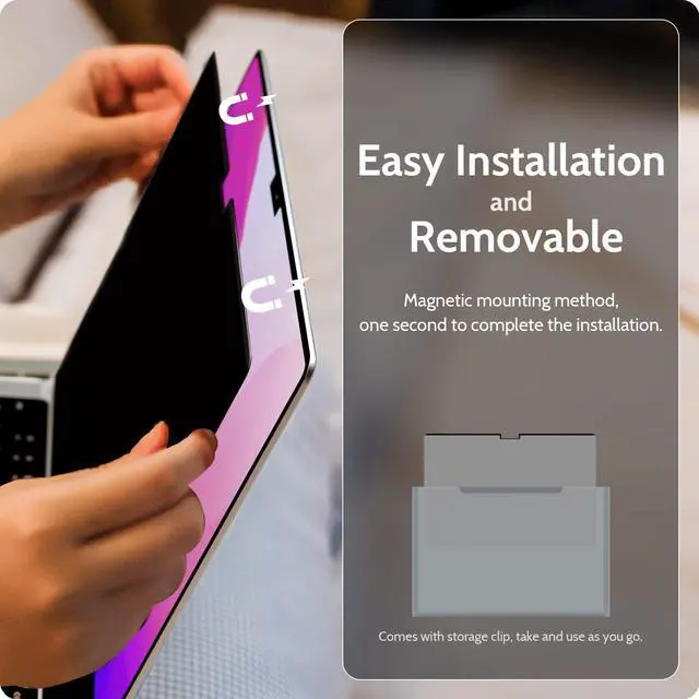 With Peslv privacy screen MacBook Pro 16.2 inch, you'll never be stuck in an awkward situation where you don't know how to install it! ^^ STUNNING PRIVACY PROTECTIONTo ensure that only the +-30 angle directly in front of the screen is visible, we have corrected the angle of the MacBook Pro privacy screen more than 5000 times to ensure that other angles of view are not visible. By getting the Peslv privacy screen MacBook Pro 16 inches, you can ensure that your computer data privacy is not peeked. ^^ PROTECT SCREEN ALSO EYESThe high-quality materials imported from Japan and the process imported from Germany have greatly improved the performance of the magnetic MacBook Pro 16inch privacy screen.
