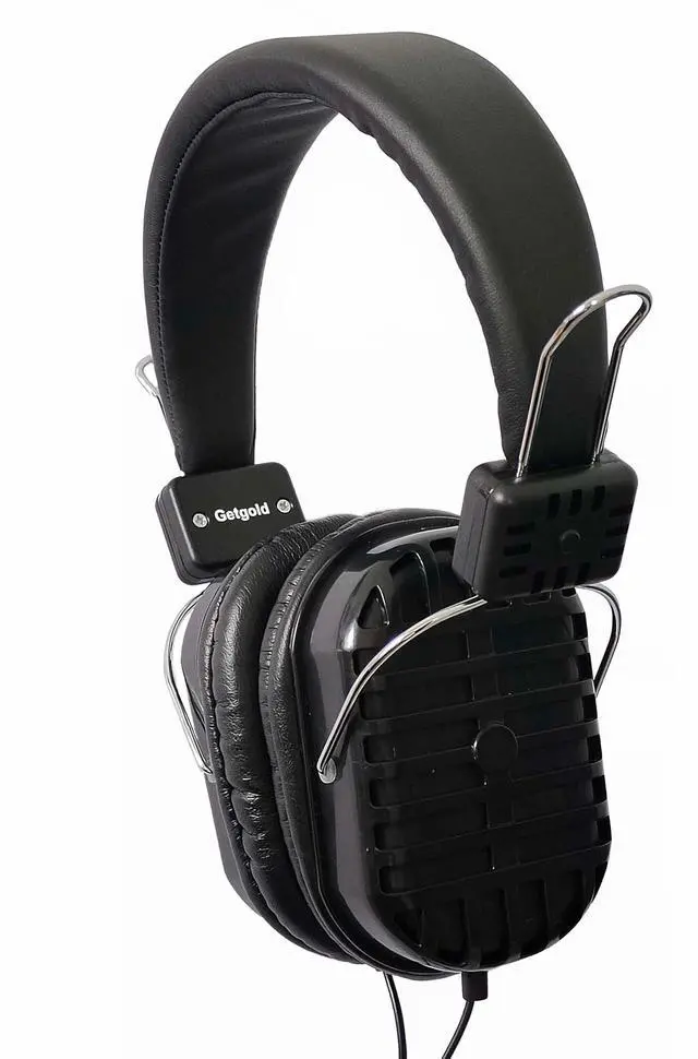 Experience superior sound quality with these professional over-ear headphones from Getgold. The sleek black design features a durable steel headband construction that provides both comfort and longevity. The classic wired connection with a standard 3.5 mm jack ensures universal compatibility with your favorite devices. The padded ear cups are designed for extended listening sessions, while the adjustable headband allows for a custom fit. These headphones showcase a distinctive geometric pattern on the ear cups, adding a modern aesthetic touch to their professional appearance. The soft cushioning and premium materials deliver comfort during long listening sessions, whether you're enjoying music, gaming, or working.