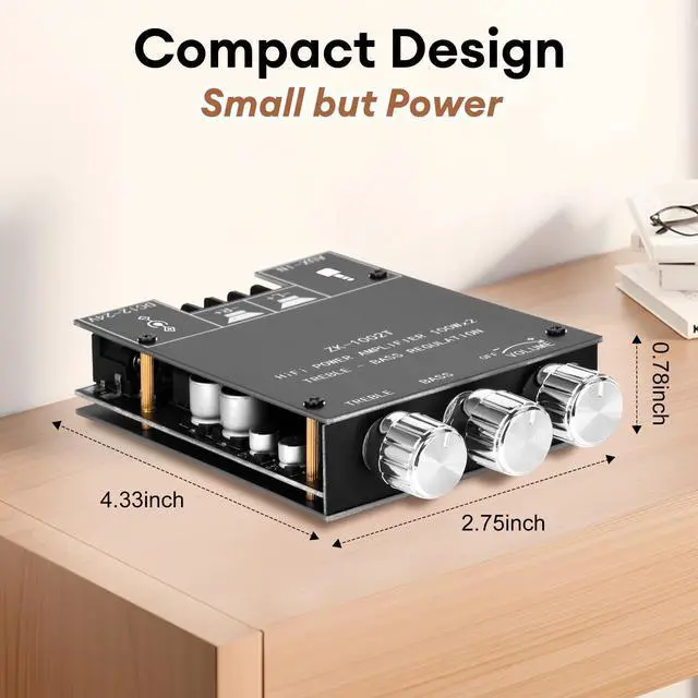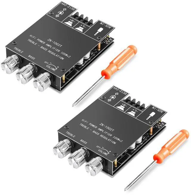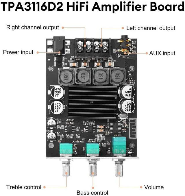 [Dual TPA3116D2 HiFi Chip]Daakro ZK-1002T Bluetooth Amplifier Board uses the original imported TPA3116D2 HiFi amplifier chip with PurePath technology for ultra-high resolution, ultra-low distortion and high-fidelity sound quality. Supports 2.0 -channel configuration, including left channel and right channel output. The left and right channels each provide 100W output power, creating an immersive sound experience.