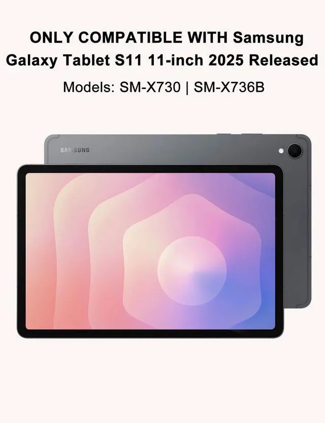 Samsung Galaxy Tab S11 2025(Model: SM-X730/SM-X736B). Not fit any other models. Please confirm your tablet model before purchasing. Keyboard FunctionallyMagnetically detachable super slim 5mm and light weight bluetooth keyboard with 10M range. And the book cover for samsung tab s11 keyboard with strong magnetic keyboard gives you a stable platform for typing that won't move easily. Rechargeable BatteryBuilt-in rechargeable battery for long keyboard life. For galaxy tab s11 2025 keypad case ensures your device is always ready for action, thanks to its auto wake/sleep function. Precise CutoutsPrecise cutout allows full access to all ports, user interface, sensors, speakers, microphone and cameras. Multiple Viewing AnglesThis keyboard for samsung tablet has 3 grooves to adjust the viewing angle as you like, make your tablet stand steadily. Perfect for working, writing, reading or watching videos. 360 Protection for TabletFor s11 galaxy tab case keyboard features a sturdy high-quality PU shell and soft anti slip rubber lining inside, providing comprehensive protection for your tablet. Portable Shortcut KeysThe smart keypad case for galaxy tab has shortcut function keys, allowing you to enjoy the excellent versatility for samsung galaxy tablet case for typing, reading and gaming.