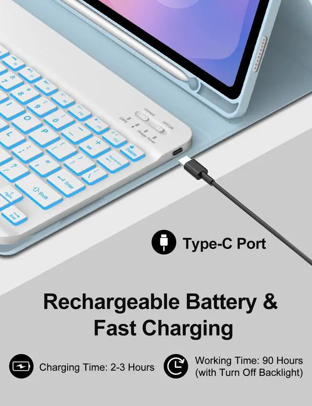 Auto Sleep & Wake FunctionFor galaxy s11 11inch case keyboard will automatically put the tablet screen to sleep or wake up when you open or close it, which helps protect and save battery life, extending the time you use your tablet. Gift ChoiceIf you are at a loss for gifts ahead of Christmas, Thanksgiving, Mother's Day, Father's Day, or birthday, then a tablet case with magnetic keyboard is a thoughtful gift for parents/children/friends/colleagues! How to connect to Bluetooth? 1. Please fully charge the keyboard and turn it on (usually 2-3 hours). 2. Press the keys Fn+C to turn on the Bluetooth of the keyboard. 3. Turn on the Bluetooth of the Tablet. 4. Find and select "Bluetooth Keyboard", it will automatically connect.