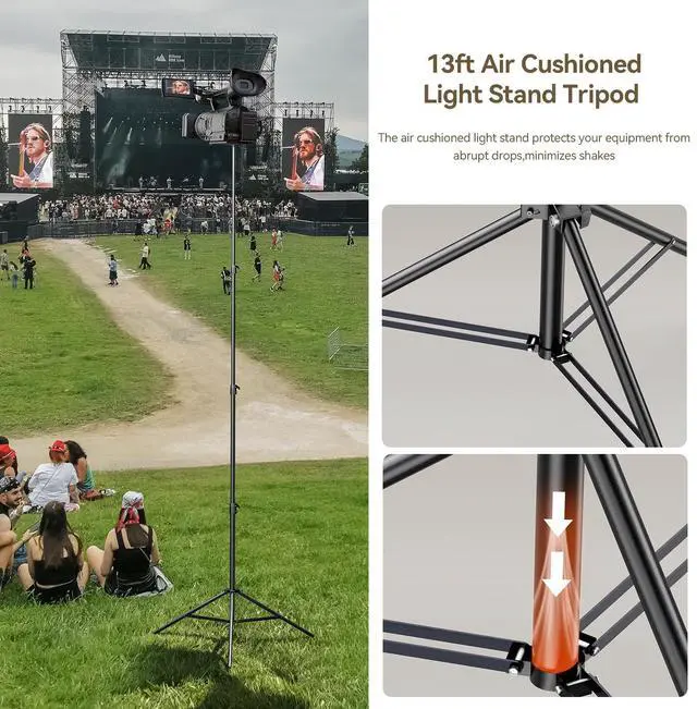 Reliable Air Cushion Design: Light Stand Tripod features reliable air cushion, which effectively prevents sudden drops and finger pinch during height adjustment. It enhance safety and stability for photo and video shooting. ^^