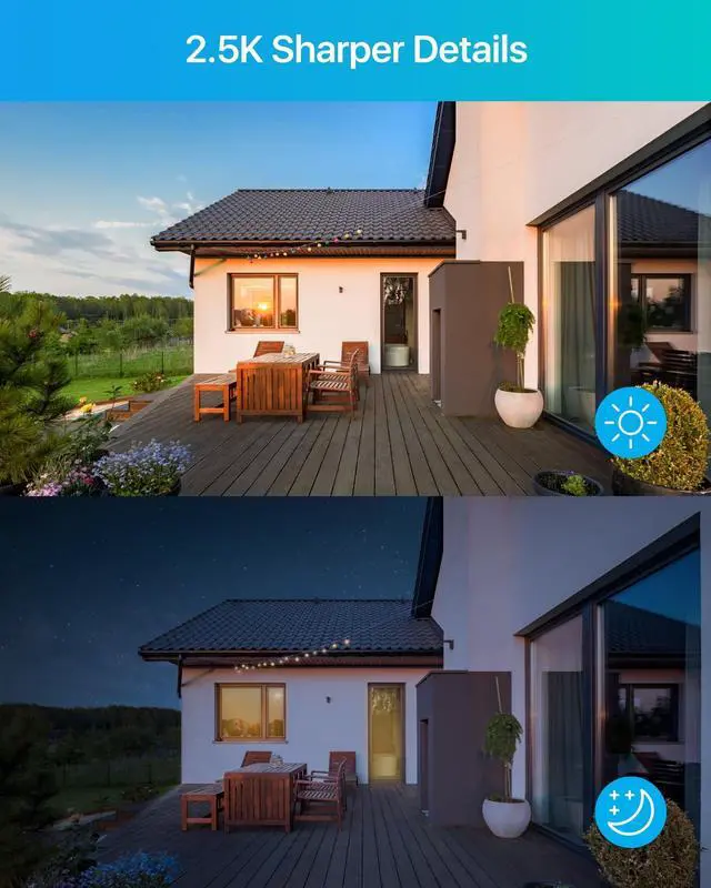 4MP HD Images and 100ft Night Vision 2.5K HD let you see more clearly. Watch over everything in crystal-clear video day or night with the security camera's automatic IR-CUT filter up to 100ft night vision in total darkness. ^^ Person Vehicle DetectionThis surveillance cameras can intelligently detect people and vehicles. Check in on your home or business with free ZOSI Smart app for live view & playback anytime anywhere. ^^ Smart Light and Sound AlarmThis security camera can respond to any potential danger through an intelligent sound and light alarm system. Smart notifications with snapshots will be pushed to your smartphone through the application.