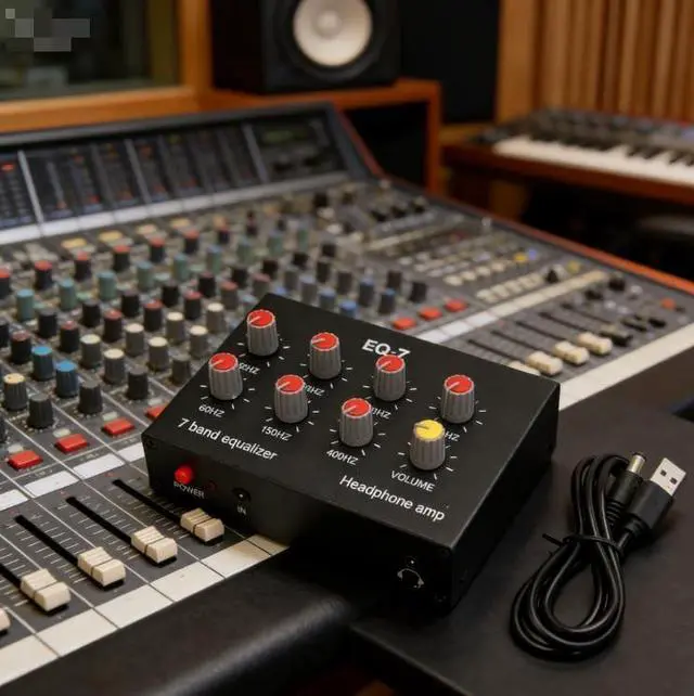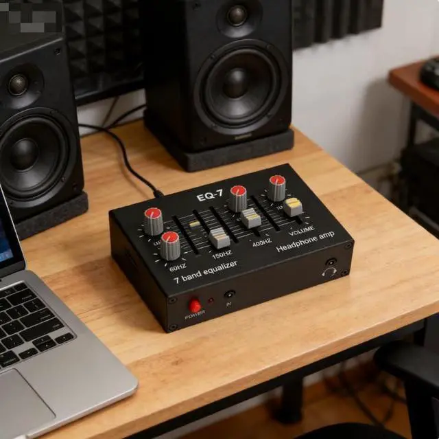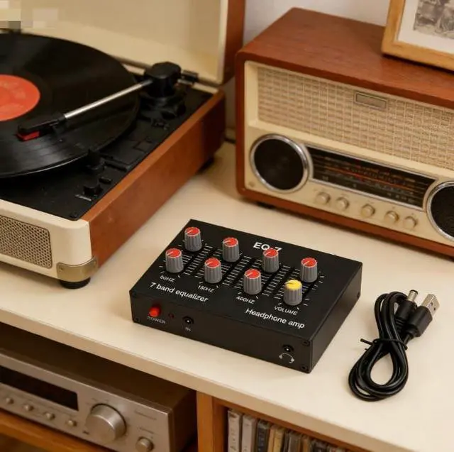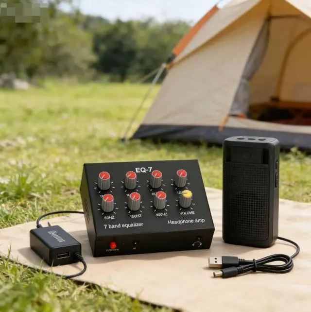 [VERSATILE-COMPATIBILITY]-Equipped-with-a-NE5532-composed-ear-amplifier-for-headphones, -adjustable-high-and-low-settings, -and-a- 3.5 mm-input-interface-for-various-devices. ^^ [ENHANCED-AMPLIFICATION]-The-preamplification-gain-and-op-amp-provide-5-times-amplification, -delivering-14dB-for-powerful-sound-performance. ^^ [SUPERIOR-SOUND-QUALITY]-Experience-precise-audio-adjustments-with-the-7-band-equalization-circuit-control-range-of-12dB, -allowing-you-to-fine-tune-frequencies-from-60HZ-to-15KHZ. ^^ [-DESIGN]-Crafted-from-aluminum-alloy, -this-dual-channel-sound-equalizer-offers-high-strength, -, -and-stable-performance-for-long-lasting-use. ^^ [EASY-INSTALLATION]-Simply-connect-the-equalizer-to-the-power-supply-using-the-included-cable-and-start-customizing-your-audio-preferences-for-an-immersive-listening-experience. ^^ ^^ ^^ ^^ ^^