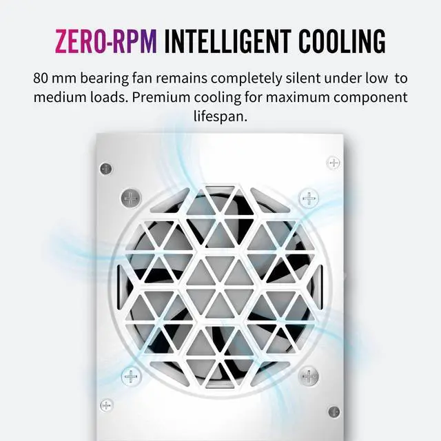 Fully Modular: Detachable cables for easy management ^^ 80 mm hydraulic bearing fan that supports 0 RPM mode ^^