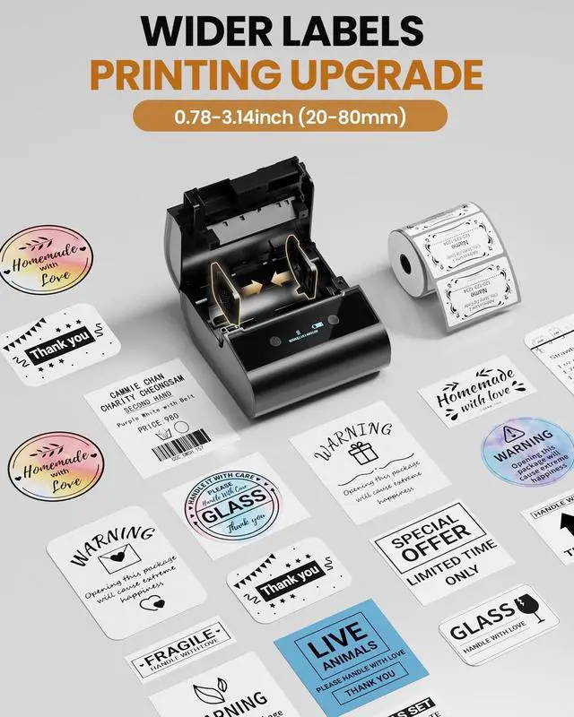 Newest Upgraded: Comparde with traditional 2 inch label makers, M260 barcode label printer support from 0.78 '' - 3.14 '' width thermal label (print labels ranging from 1/2 to 3 inches wide), support more sizes than traditional 2 inch label maker machine (Notice: The label maker can't print 4 x 6 shipping labels) ^^
