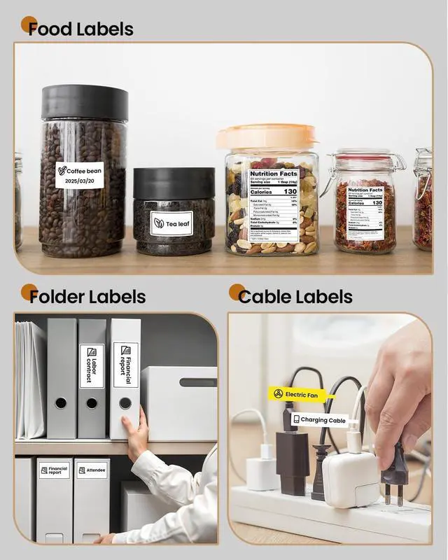 Large Label Maker: Never need ink and toner. M260 wide label maker only works with thermal paper. Energy Saving & Never Dirty Hands. With 1 roll sample label (100pcs 1.57" x 1.18" labels). The labels are waterproof and oil-proof, easy to tear without leaving glue.