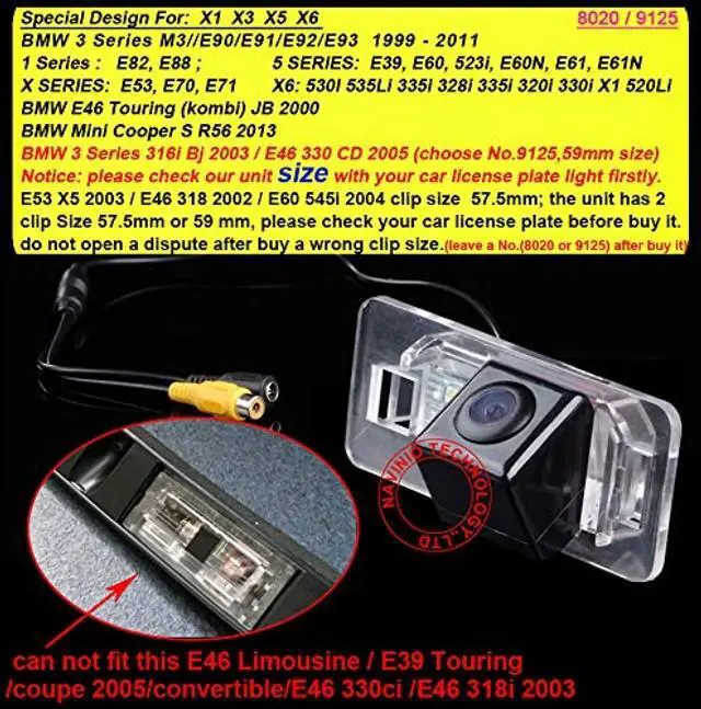 Dear customer, please must check the camera size and appearance before place a order, see if can fit your car license light place size and appearance! Because the same car model in different countries may have some difference, please check the camera size and compare the installation of your car carefully to avoid mistake. This product could fit for all below models as expected: Replacement for BMW 3 Series M3/E90/E91/E92/E93 1999-2011Replacement for 1