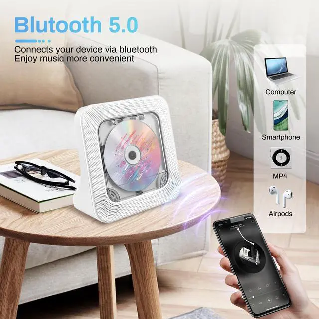 Visual Harmony: The Art of the Spin. Experience your music in motion. Unlike traditional flat-laying players, our unique 75 vertical desktop design transforms your favorite discs into a rotating piece of kinetic art. With its minimalist, clean-line aesthetic and transparent protective cover, this player doesnt just play musicit elevates your home decor, fitting perfectly on bookshelves, nightstands, or modern workspaces.