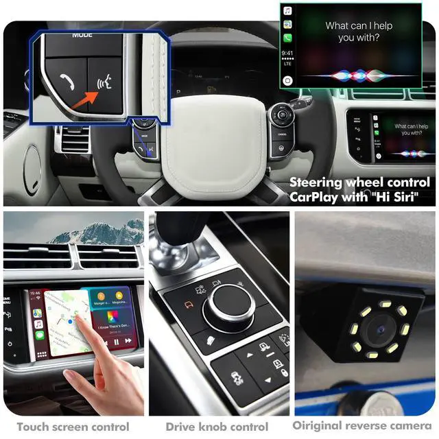 ^^ Powerful ProcessorSUNPLUS SPHE8368U, Cortex A9. Land Rover wireless carplay Built-in 5GHz WiFi with antenna, making the wireless connection more stable. Supports steering wheel and radio buttons control, support original camera or aftermarket camera. Jaguar apple carplay no need to use an external microphone, no need to insert an extra box under the dashboard.