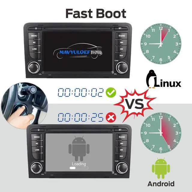Compatible ModelsAudi A3 S3 RS3 8P 2003-2012 (Retains Original Steering Wheel Controls) ^^ Fast BootLinux-based system powers up in 5 seconds.