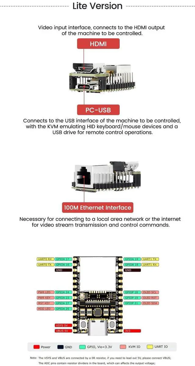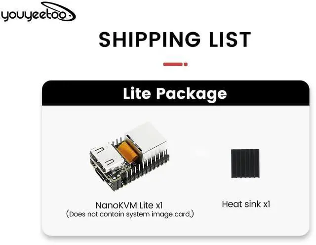 , etc. and uses the additional memory of the TF card and mounts you as a USB flash drive ^^ [Network Capabilities] The entire system has a 100m network connection for transmitting video and control signals. ^^ [ Power Interface] An ATX power supply interface (USB-C shape) facilitates remote control and displays the host's input and switch-off status. ^^ [OLED Status Display] The housing also has an OLED display for the local IP and KVM-related status. ^^ [Wiki] "wiki. sipeed. com/hardware/en/kvm/nanokvm/quick_start. html"; if you have any questions, please click on" Youyeetoo "to provide you, or send an email to AM2 #youyeetoo.