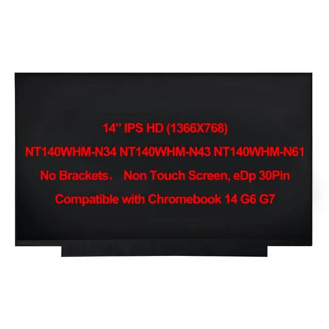 Brand New NT140WHM-N43 V 8.3 N140BGA-EA4 NT140WHM-N61 NT140WHM-N34 NT140WHM-N51 B140XTN 07.2 14" HD 1366X768 30Pin Laptop LCD Screen Panel LED Display Replacement for HP Chromebook 14 G6 G7 Fortis 14 G10 Non Touch L90430-001 (NON Touch HD Only) ^^