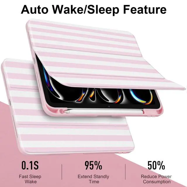 INSTANT RESPONSE & DUAL ANGLES: The magnetic smart cover provides 0.1 s fast response to auto sleep/wake your device, effectively reducing power consumption by 50% and extending standby time. The trifold stand offers two ergonomic modes: a 65 angle for immersive movie viewing and a 30 angle for comfortable typing and working.