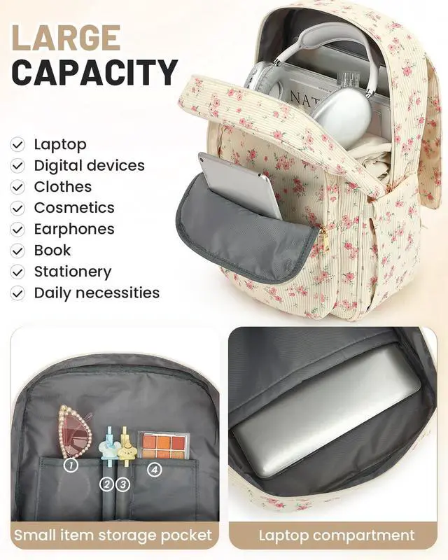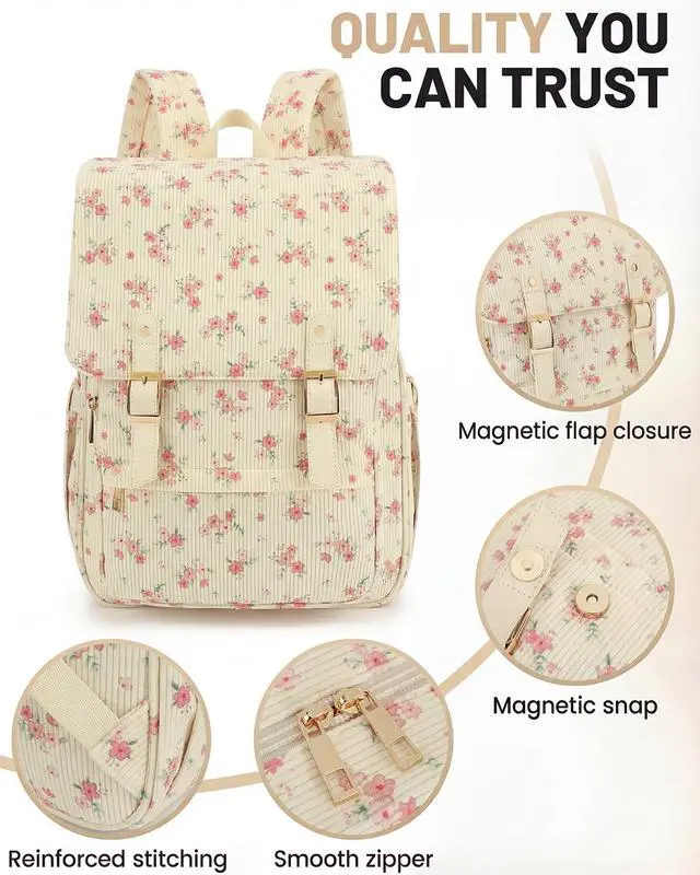 Corduroy Material: This corduroy laptop backpack is crafted from high-quality corduroy fabric, featuring a soft, skin-friendly texture that feels comfortable against your skin. All seams are reinforced with neat stitching for enhanced durability, making it sturdy enough to withstand daily use for school, commutes, or outings.