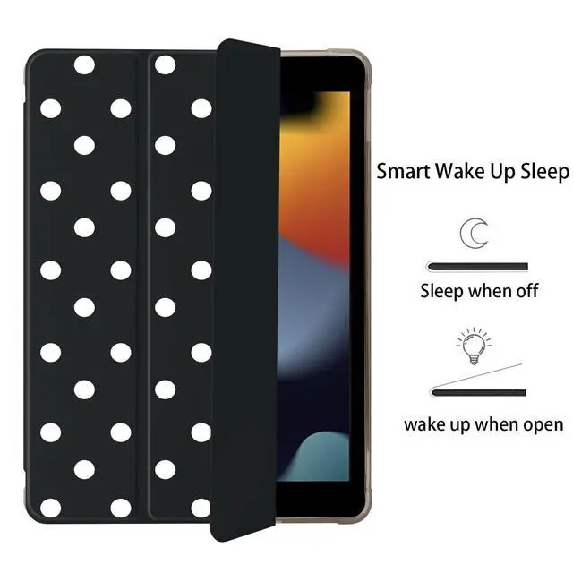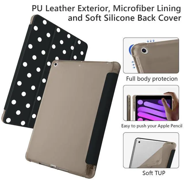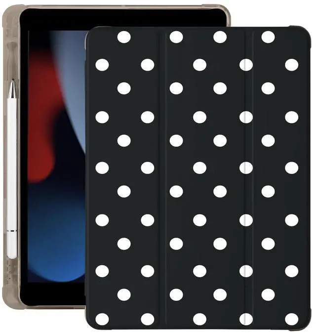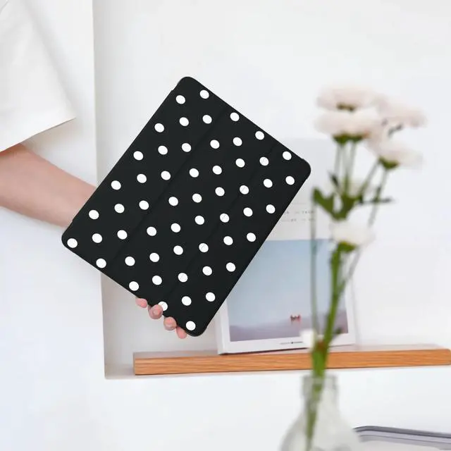 BlHMCASE Cute White Polka Dot for iPad Air 11 Inch Case 7th/6th Generation (M3/M2) 2025/2024 with Pencil Holder, Auto Sleep/Wake, Black Leather Soft TPU Back Cover