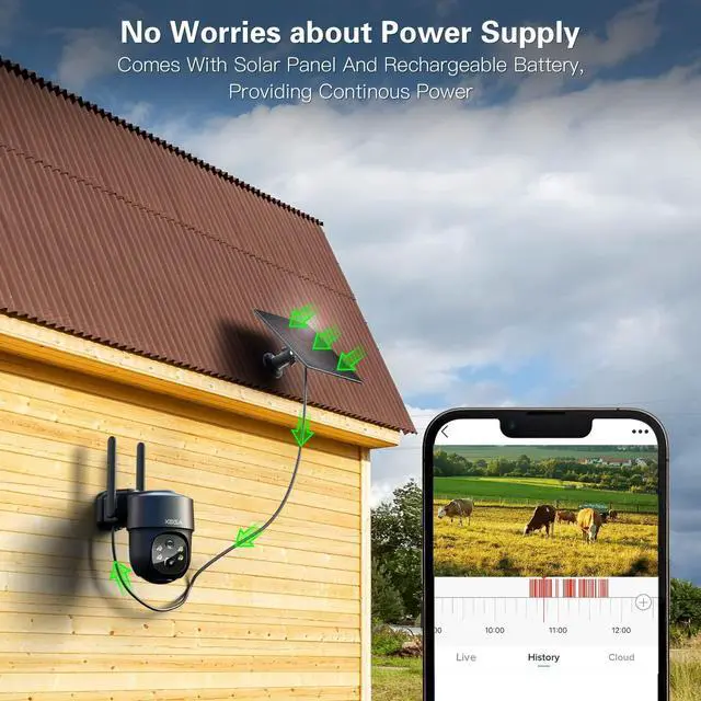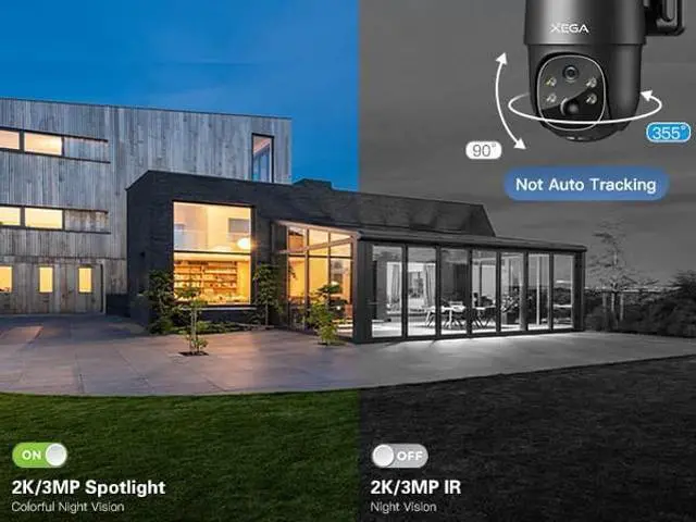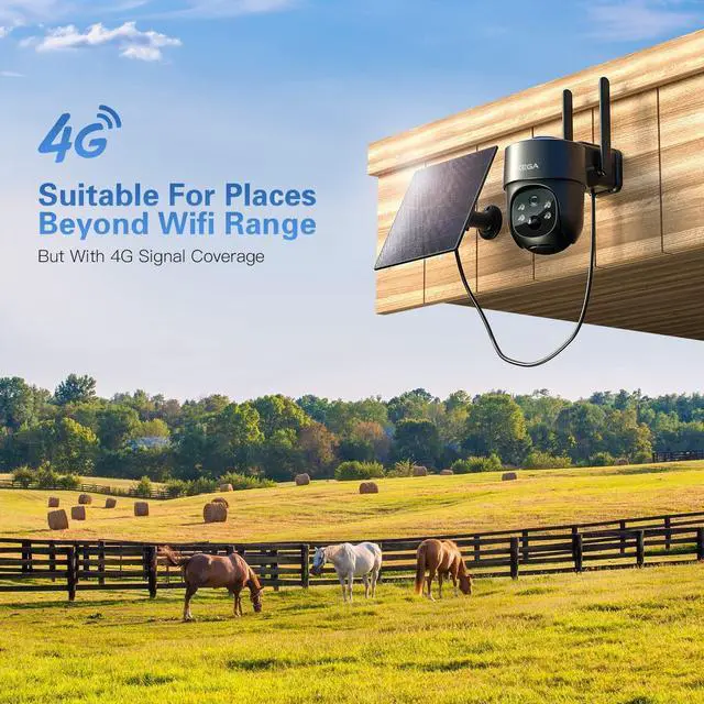 Combined energy supply from solar panel and built-in batterie, there is no need to dismount the camera for recharging or worry about the weather. With about 3 hours of direct sunlight, the solar panel can provide this 4G lte security camera with enough power to run for a whole day. ^^ 2K/3mp SUPER HD & COVER EVERY CORNERXega 4G Outdoor Wireless Solar Powered Camera captures each moment in 2K HD resolution, providing you with a clear footage for more visual details. The 4G LTE Security Camera Outdoor can turn its head 355horizontally and 90vertically, pan and tilt (Not supports automatic tracking of moving objects).