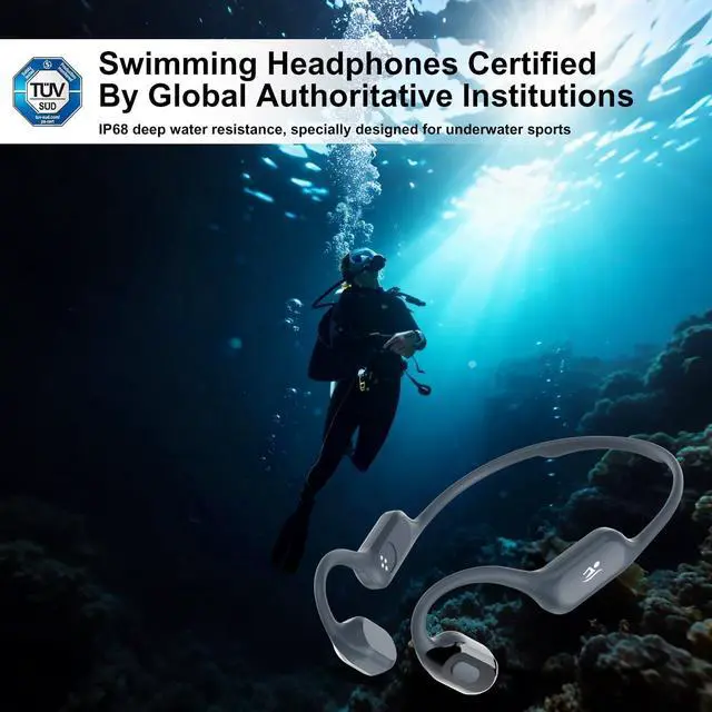 IP68 Waterproof Swimming Headphone: This bone conduction headphone is specifically engineered for swimmers, surfers, and water sports enthusiasts. It features an IP68 waterproof rating, indicating exceptional water resistance. Please note that Bluetooth connectivity is not supported underwater; users should switch to MP3 mode for seamless performance.
