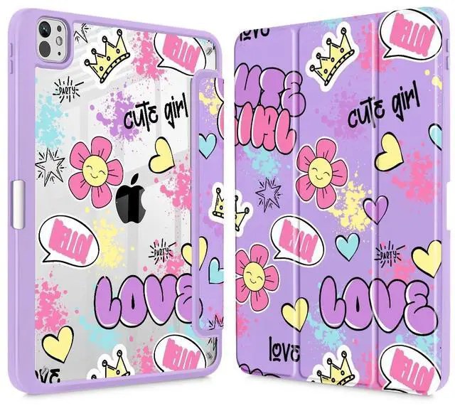 May Chen for iPad Pro 13 Inch Case M5 2025 / M4 2024, Built Pencil Holder & Clear Transparent Print Back Shell Slim Stand Shockproof Tablet Cover, Auto Wake/Sleep, Cute Girl Pattern