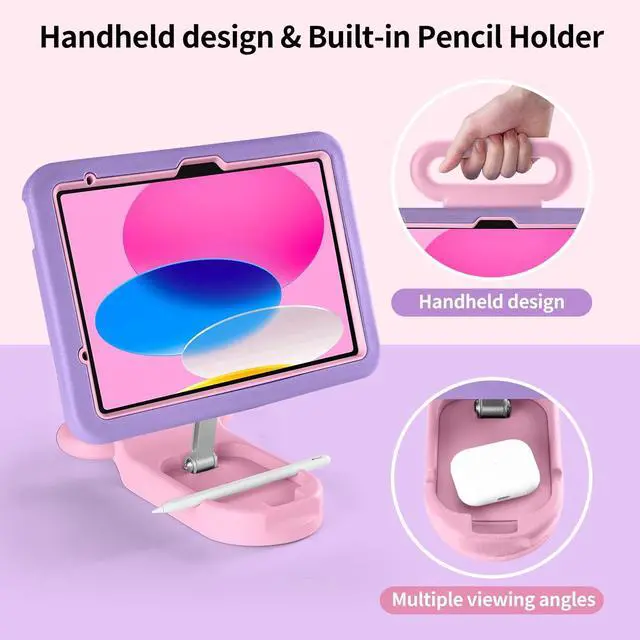 Handle & Stand: Equipped with a sturdy, easy-grip handle thats perfect for little hands. It doubles as a stable kickstand, offering multiple viewing angles for watching videos, online learning, or drawing.