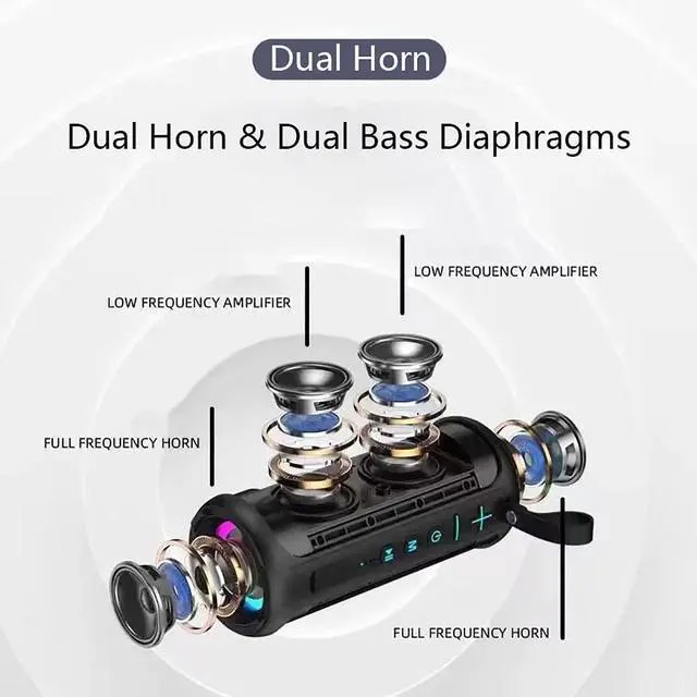 Additional Features: Dynamic RGB lighting adds a vibrant visual experience, while the built-in microphone enables hands-free calls and the TWS interconnectivity allows for stereo sound. Perfect for outdoor activities, travels, and more.