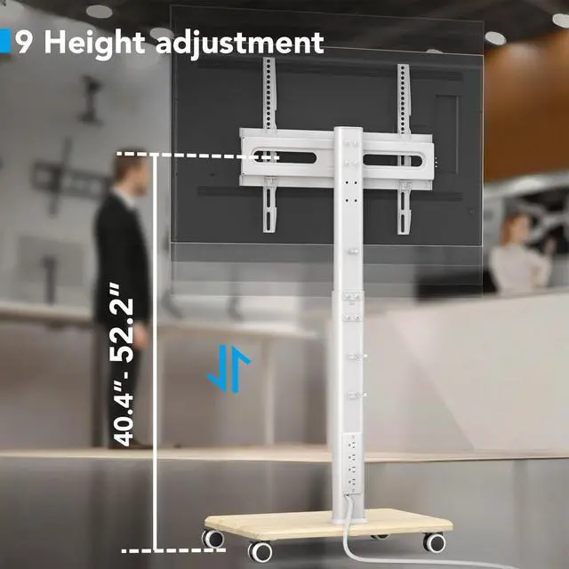 UNIVERSAL ROLLING TV STAND WITH WHEELS AX WABER rolling TV stand fit most 27 29 30 32 37 39 40 43 47 50 55 60 65 inches LCD/LED/OLED Flat/Curved panel screen or monitor for Sony/Samsung/Sharp/TCL/ LG etc. FITUEYES rolling TV stand fits VESA 100x100mm to 400x400mm. Adapts to MAX 88lbs large TVs ^^ Mobile TV STAND WITH POWER OUTLETS This Mobile TV cart with Wheels features a built-in power outlet with 4 AC outlets (120V/15A), and a 6.5 ft power cord. Cable management on the back of the mobile TV stand keeps your wires in place, stay away from entangled troubles.