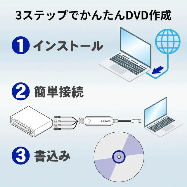 "GV-USB2/HQ" is a USB connected video capture that allows you to digitize VHS tape or 8mm video tape to store Blu-ray or DVD. Comes with CyberLink PowerDirector8 for I-O DATA that can be edited carefully and high-definition correction. You can take it out with your iPod or PSP or directly upload it to YouTube. Using the scene detection function, you can automatically detect and divide the switching between video scenes, making it easy to edit long periods of time. The "Smart Fit" function automatically converts video quality to the optimal image quality according to the DVD disc capacity, so you can store your video for long periods of time perfectly on a single DVD.