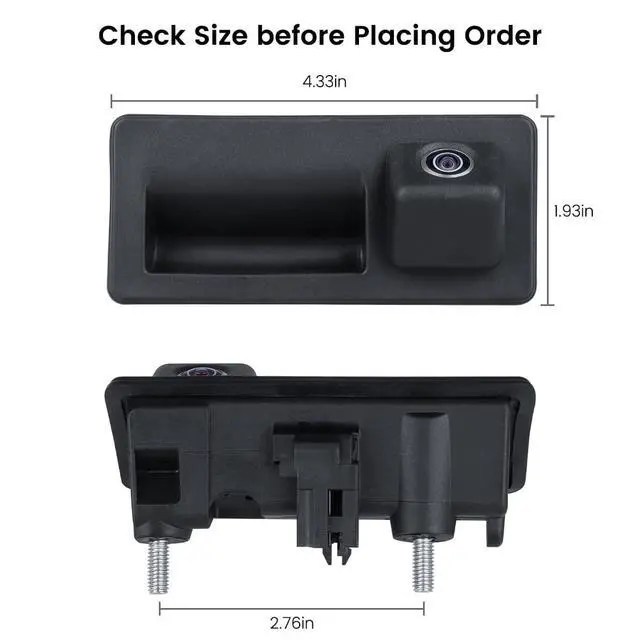 720P Trunk Handle Car Backup Camera---1280*720 resolution, high clarity, 170 degrees viewing angle, no worry about blind spot area, OEM (OEM Look) trunk handle back up camera for VW and AUDI. IP68 waterproof, works properly under car washing or bad weather, fantastic night vision effect ^^ Car Rear View Camera For Many VW and Audi Models---PLEASE MUST CHECK THE SIZE OF YOUR TRUNK FOR CONFIRMATION TO SEE IF OUR CAMERA SIZE IS COMPATIBLE WITH YOUR TRUNK before placing orders, and this rear view camera can only work with screen monitor with RCA connector ^^ Support Both AHD and CVBS Video Signal---This vehicle rear view camera can work with both AHD monitors (AHD 720P 30HZ ONLY) and CVBS monitors.