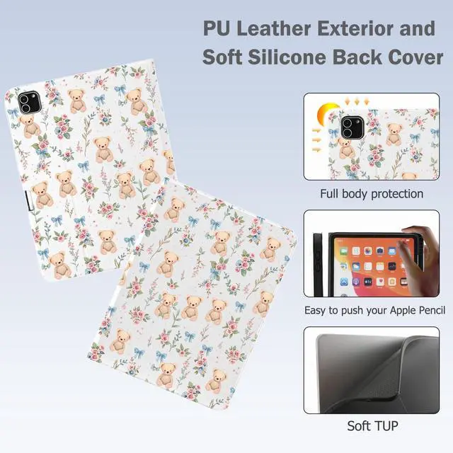 Please Note: It doesn't compatible with any other tablet models ^^ Well made with premium leather and rubber external cover and soft silicone back cover, offers full body protection from drops and scratches ^^ Built-in Apple Pencil holder, grab your Apple Pencil effortlessly whenever you want, keep the apple pencil as safe as your iPad all the time ^^ The Case for iPad has three bracket angles for comfortable watching movie or typing. Available in a variety of exquisite and unique pattern ^^ Built-in magnetic strip provides auto sleep / wake function. Precise cutout and design allow easy access to all ports, sensors, speakers, cameras