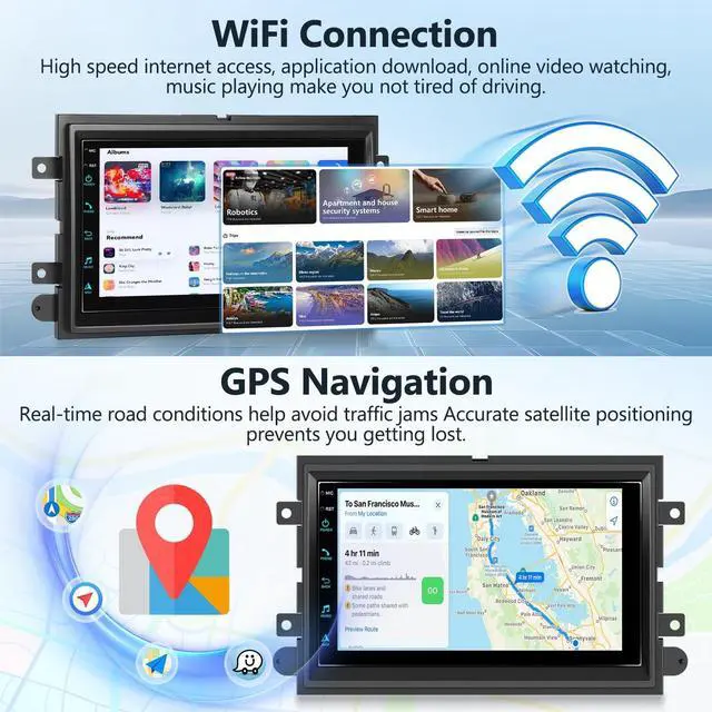 Say goodbye to tangled cables and hello to a new level of convenience and freedom! ^^ Bluetooth & FM/RDSEquipped with Bluetooth 4.2 technology, you can easily pair your smartphone or other devices for seamless audio streaming and hands-free calling! Stay tuned to your favorite radio stations with the FM/RDS feature, providing you with a wide range of entertainment options! Delivering crisp and immersive sound quality! ^^ GPS Navigation & WIFI ConnectionWith a simple Wi-Fi connection, you can access online maps and navigation services, making it incredibly convenient to find your way around.