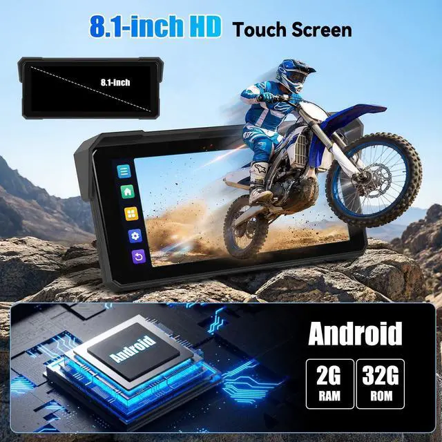 Motorcycle GPS Navigation System with Wireless Carplay Android Auto 8.1 -inch Screen 2+32G Smart Player With GPS
