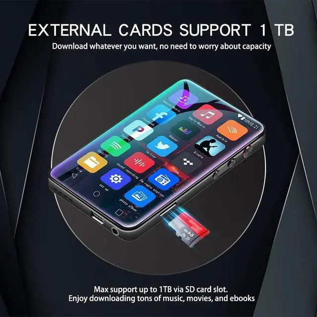Full-Color Wide-Angle Screen: Immerse yourself in a theater-like viewing experience on the 1080P HD wide-angle screen of this MP4/ MP3 music player. With vibrant colors and a broad viewing angle, this smart mp3 player pulls you into a captivating visual world. Whether watching movies or videos, the screen on this portable mp3 player requires no converter, playing content directly in stunning clarity. ^^ True Freedom with