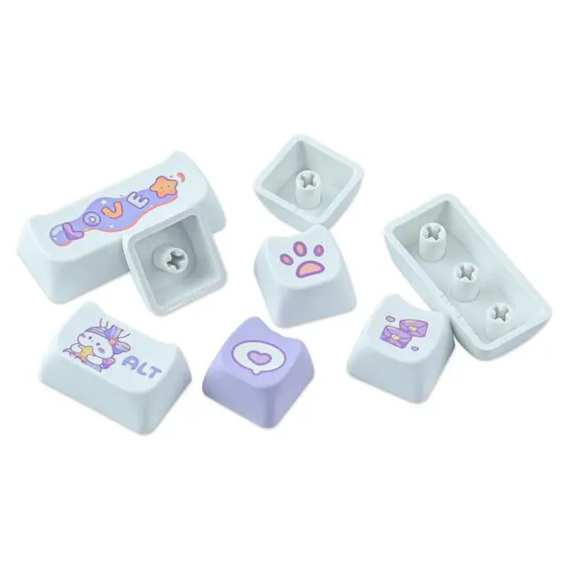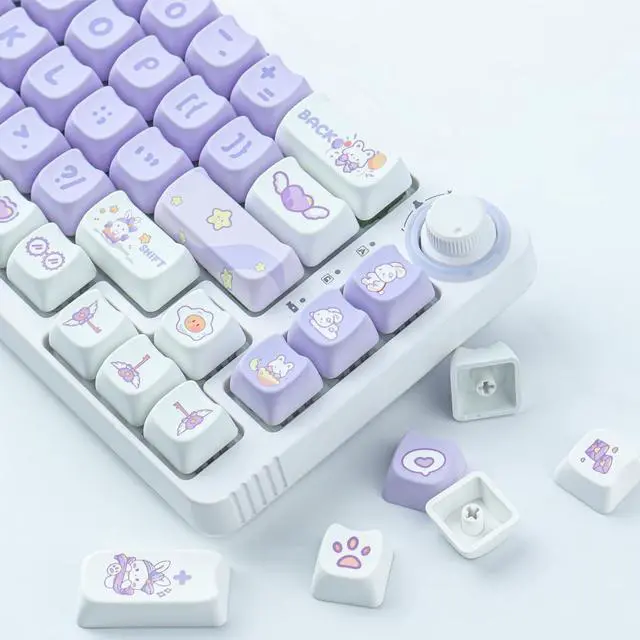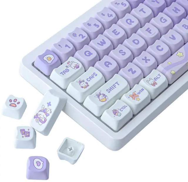 PBT Keycaps: These purple bunny keycaps are made of PBT material, with a matte texture and anti-grease coating. These keycaps are resistant to wear and tear, thick and durable, fine workmanship, and not easy to get dirty ^^