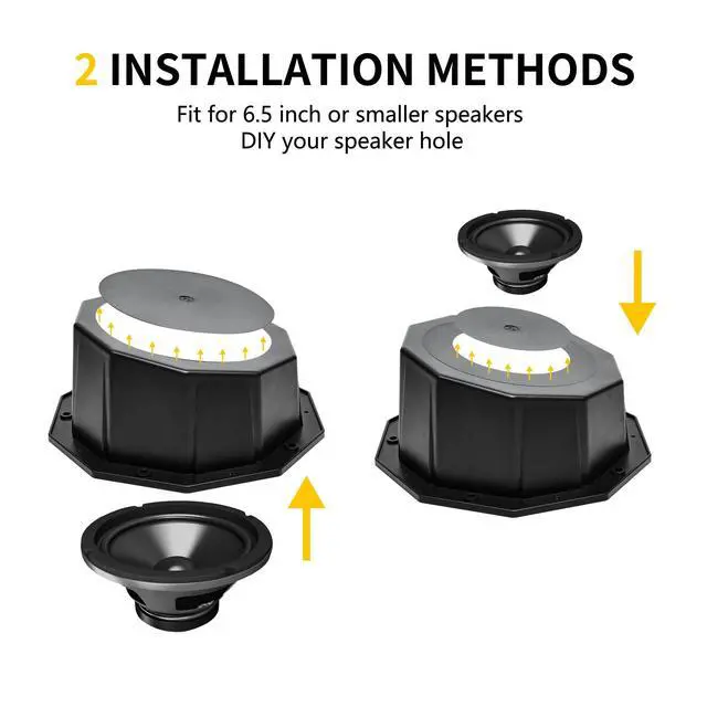 INCH OR SMALLER ROUND SPEAKERS: 2.75 -inch and 3.93 -inch heights, without pre-drill round hole, can cut round holes of 5.70 -inch or less in diameter, which makes the pod flexible for speakers 6.5 -inch or less. There is more space for speakers DIY ^^ 9.64