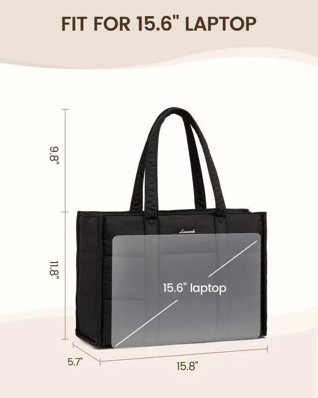 The cute tote bag's wide opening ensures you can quickly pick up your belongings ^^ Suitable Size for Everyday LifeMeasuring 15.8" L x 5.7" W x 11.8" H, this puffy laptop tote holds your daily essentials, including 15.6" laptop, 12.9" iPad, makeup, phone, glasses, charger, tissues, water bottle ^^ As a Thoughtful GiftThe women's tote bag is versatile, fitting various occasions and pairing well with different styles of outfits. It is a wonderful gift option for family and friends, and a lovely choice for women.
