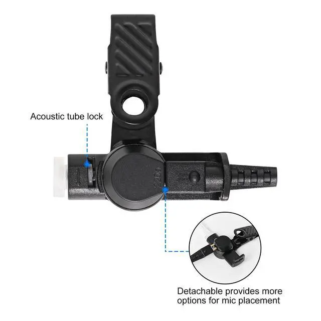 quick disconnect and lock functionThe speaker has a quick disconnect for the wire and tube, also can lock the wire in place when installed. Sensitive built-in microphone and rotatable cliptransmits high quality sound even speak at low volumes; rotatable clip can free your hands and attaches firmly to your clothes. Soft and Comfortable Wearing for long time Soft Silicone Earbuds so that You can Wear it for a Long Term ComfortableHigh strength wireTensile strength up to 10kg, so you can do special work without breaking the wire, which means it has a long life to use.