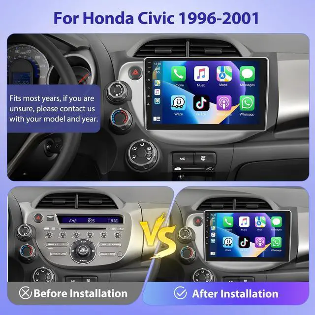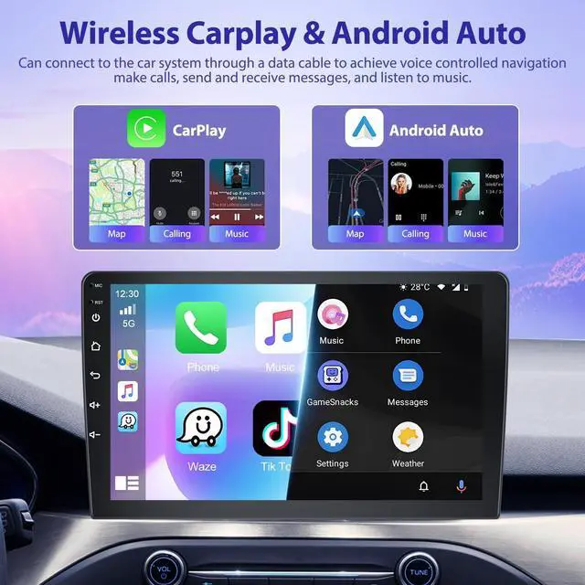 The large memory capacity ensures smooth multitasking and efficient performance. The car stereo delivers high-definition performance for a seamless user experience. Enjoy the stunning visuals on the 10.1 -inch HD touch screen with a resolution of 1024*600, providing ultra-high definition clarity! ^^ Wireless A-pple Carplay & Wireless Android AutoThe Honda Fit Jazz 2008-2013 car stereo radio supports Wireless Apple CarPlay & Android Auto functionality, enabling seamless wireless connectivity between iPhones and Android devices and the in-car system. Easily control frequently used apps, make calls, send messages, play music, and navigate using intuitive voice commands or touchscreen controlsall while keeping your focus on the road.