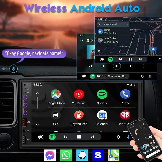Upgraded Wireless Apple CarPlay & Android Auto Integration: Automatically activates upon vehicle ignition for instant smartphone connectivity. Proprietary optimization ensures seamless performance of navigation apps (Google Maps, Waze... ), music streaming (Apple Music, Spotify... ), and communication tools. Voice command support ("Hey Siri" or "OK Google") enables hands-free calls, messaging, and turn-by-turn navigation.
